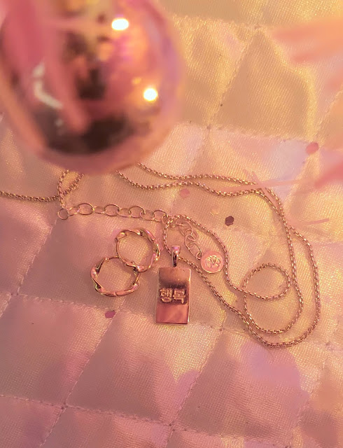 Today I have a product review for you that I'm really excited about!!! I love small, elegant and dainty pieces of jewelry and Akemi seems to specialize in exactly those kinds of pieces. Everything is so elegant and classy!!! They also make this really simple but pretty necklace that reads "Happiness" in various languages. I have the Korean one. The text is ν볡 and on the chain next to the clip there is small pendant with the national flower of Korea on it. I think it's such a lovely piece!!! And somehow knowing I'm wearing the word "happiness" just makes me instinctively feel better, like I'm carrying good energy around with me. Also my love for Korea feels deeply imbedded into the necklace too, so that's extra good energy I'm carrying around with me. ^^